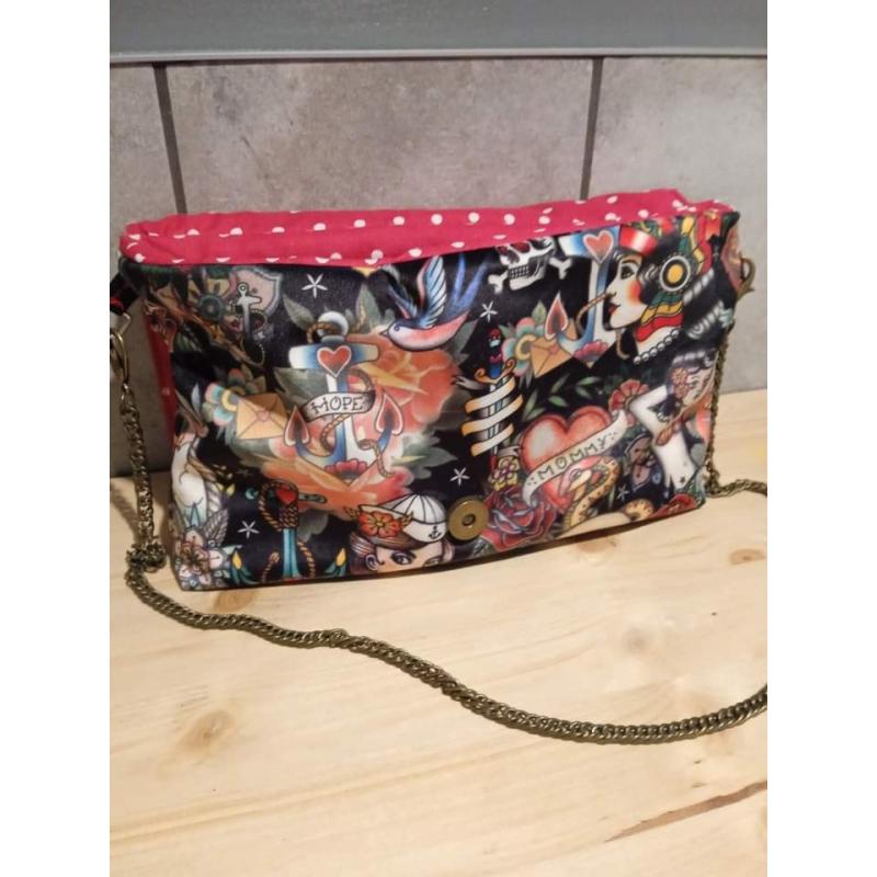 Pétillante et rétro à souhait, cette pochette joue la carte du glamour fifties avec une touche rock ! Un petit bijou qui mixe féminité vintage et caractère affirmé pour un style unique et décalé.