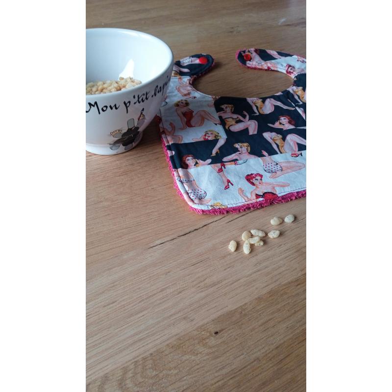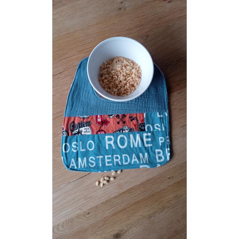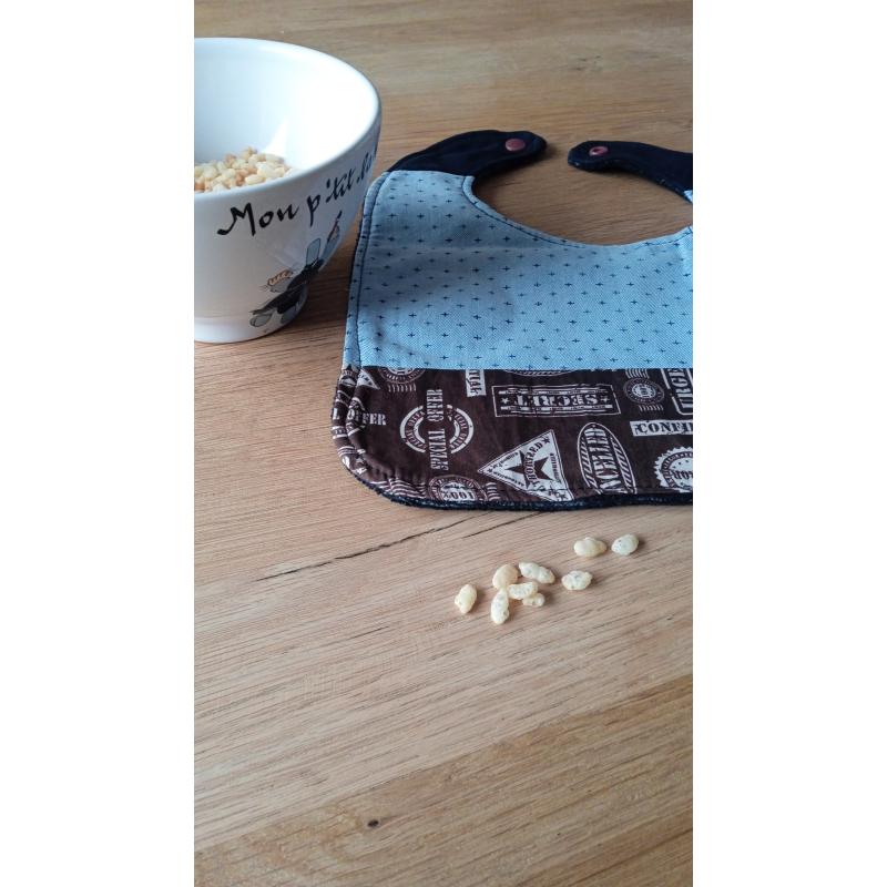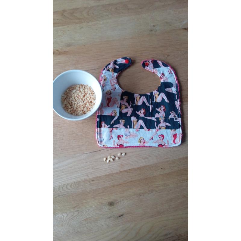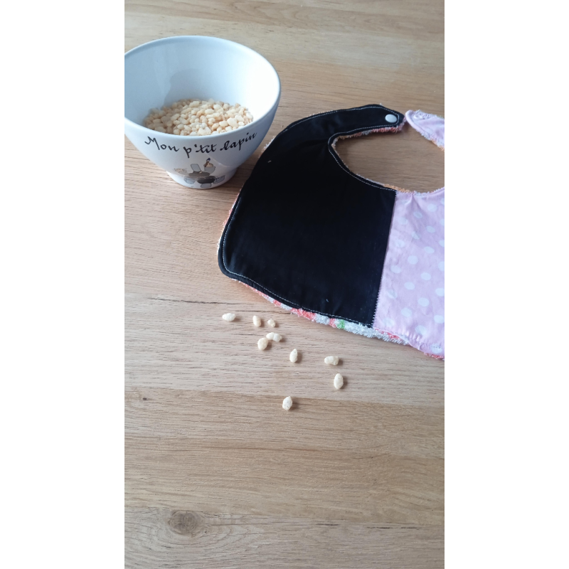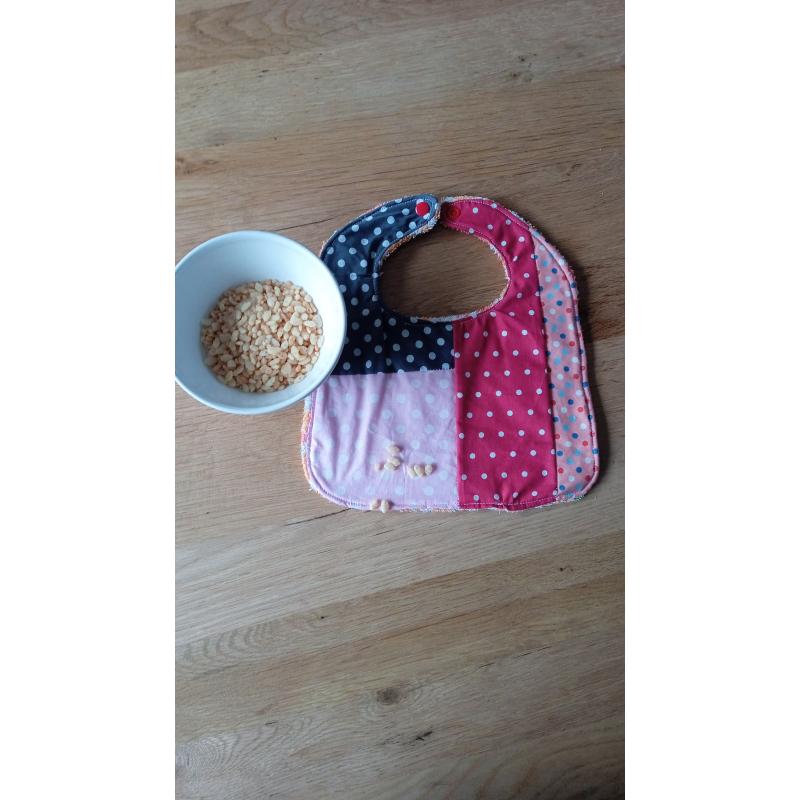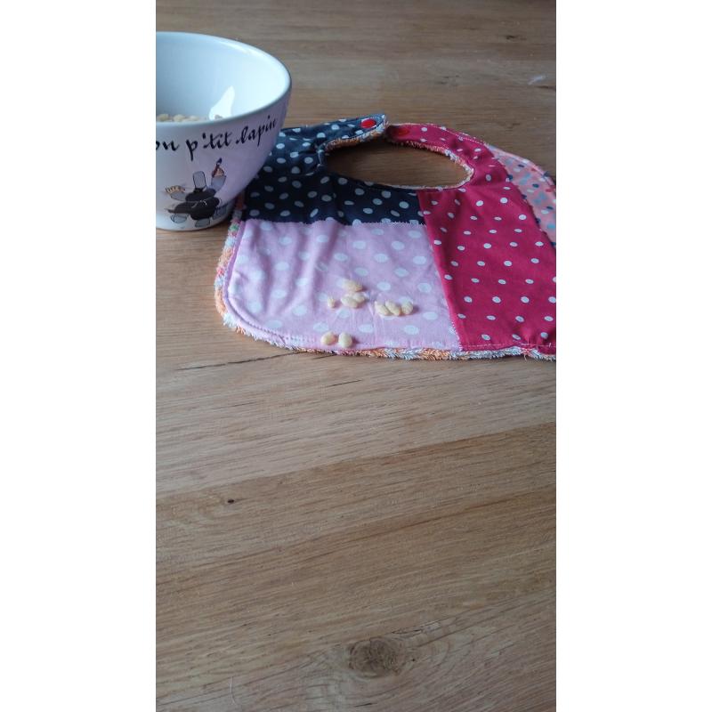 Bavoir pour bébé au style rétro et coloré, parfait pour protéger les vêtements avec élégance. Ce bavoir offre un design unique car confectionné dans les chutes de tissu. Bavoir en exemplaire unique