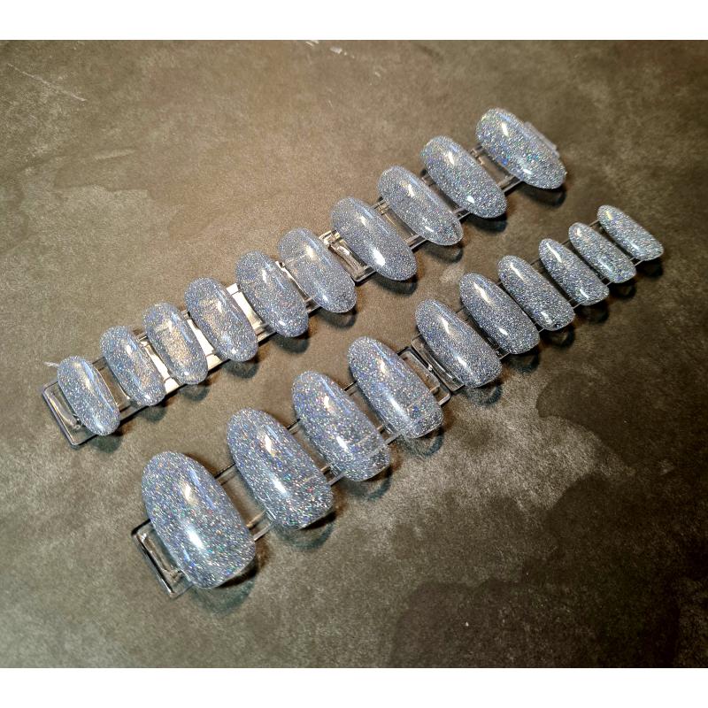 Press on nails gris argent pailletés