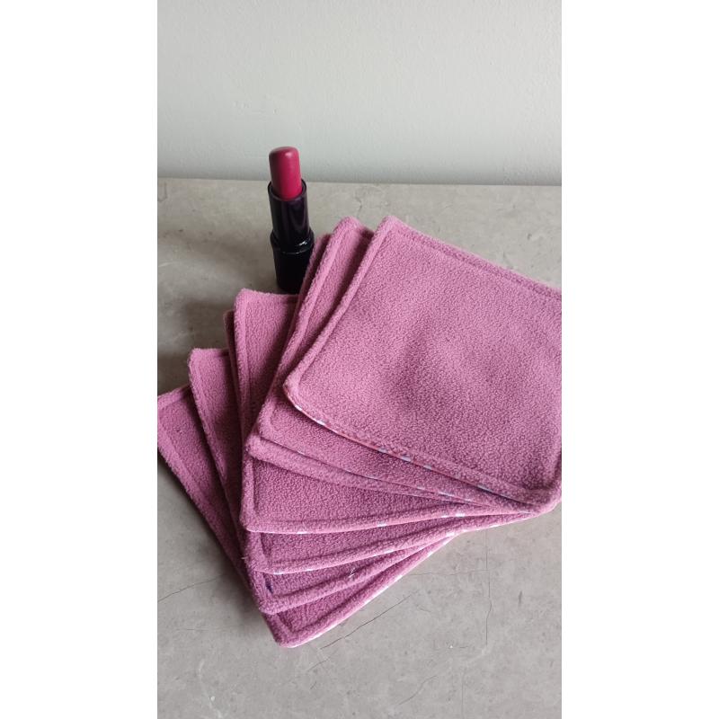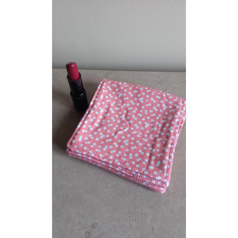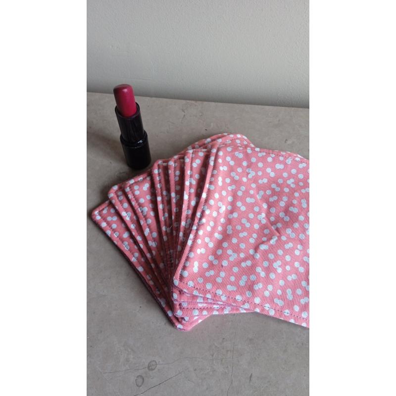 Craquez pour ces lingettes démaquillantes lavables faites main, dans un tissu rose terracotta à pois blancs — un classique indémodable qui sent bon la douceur d'antan