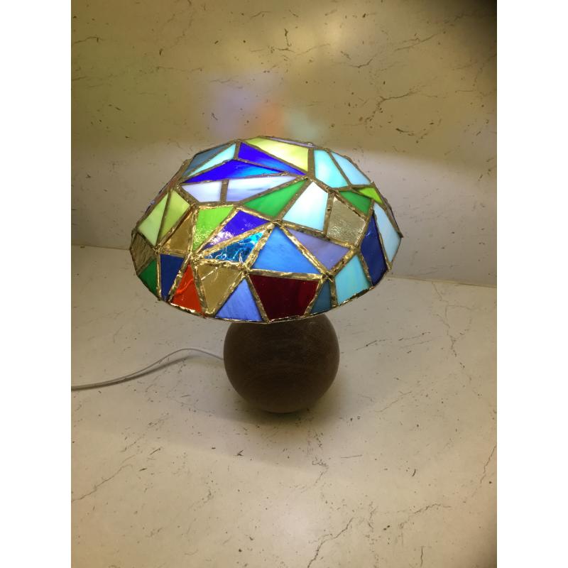 Hauteur 24 cm pied en bois l’abat-jours en verre de couleur souder à l’étain suivant la méthode Tiffany avec lampe