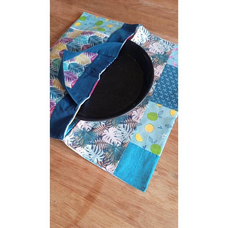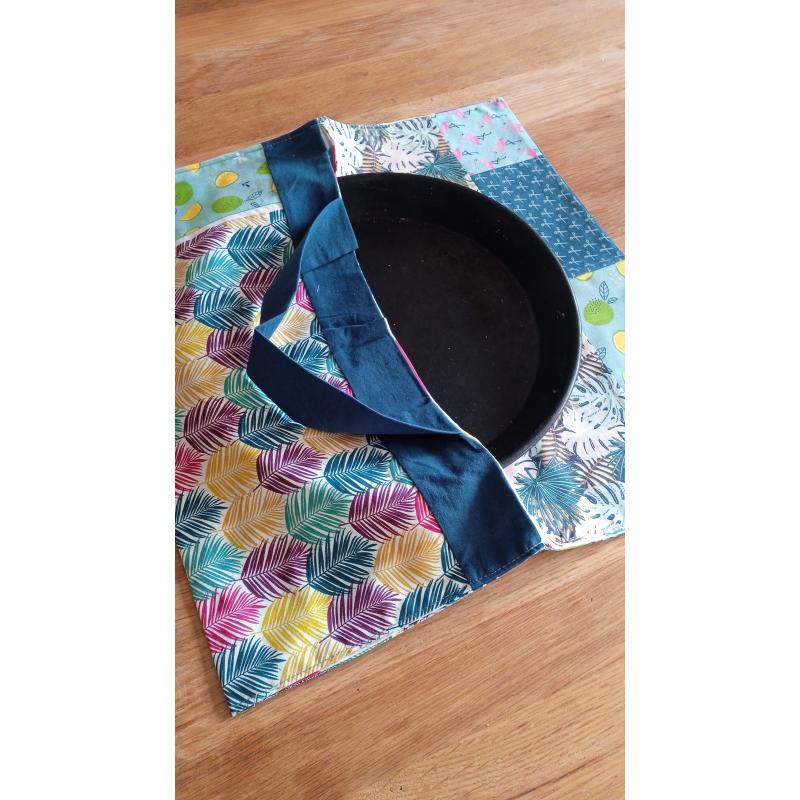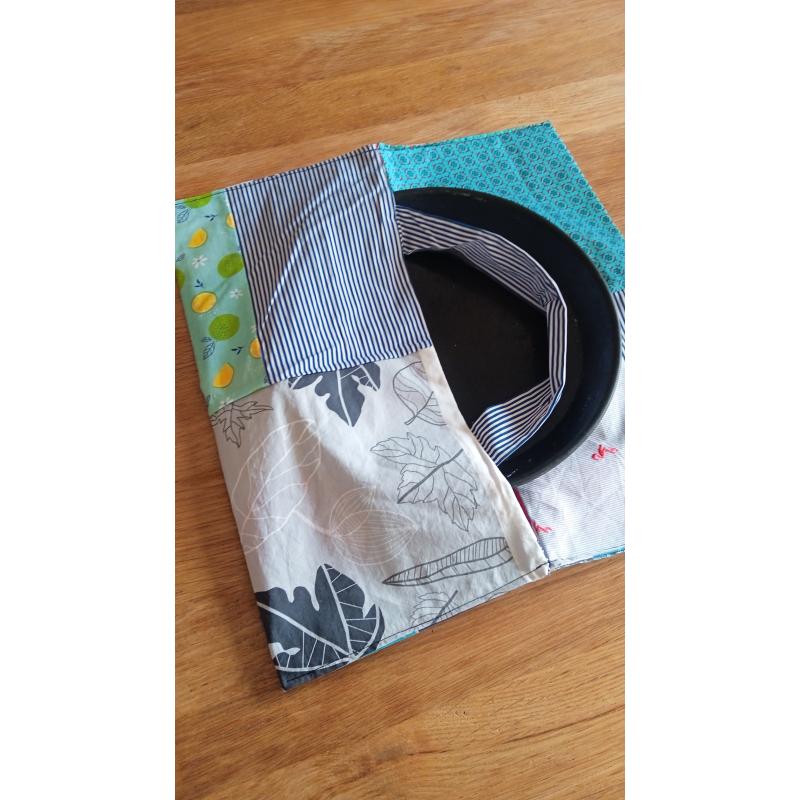 Cousu à la main dans des chutes de coton imprimé chinées avec soin, ce sac à tarte s'inspire des doux souvenirs d'antan — celui des cuisines de grand-mère, des après-midis farine sur les mains et des tartes qui refroidissent sur le rebord de la fenêtre.
