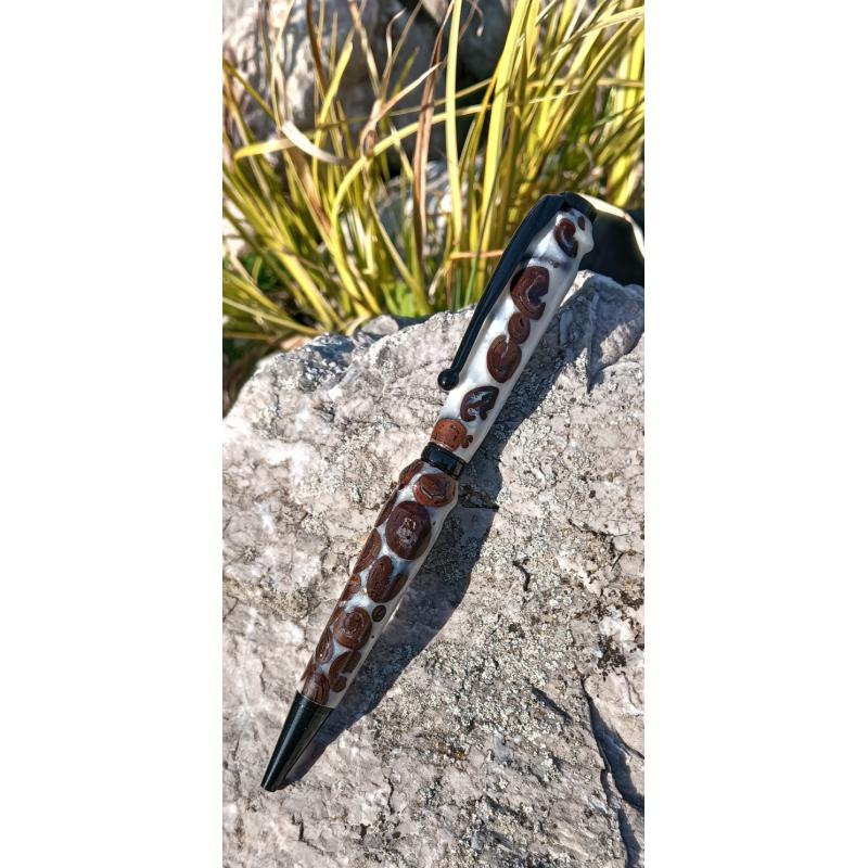 Stylo en résine avec inclusion de grains de café ! Mécanisme quart-tournant noir.