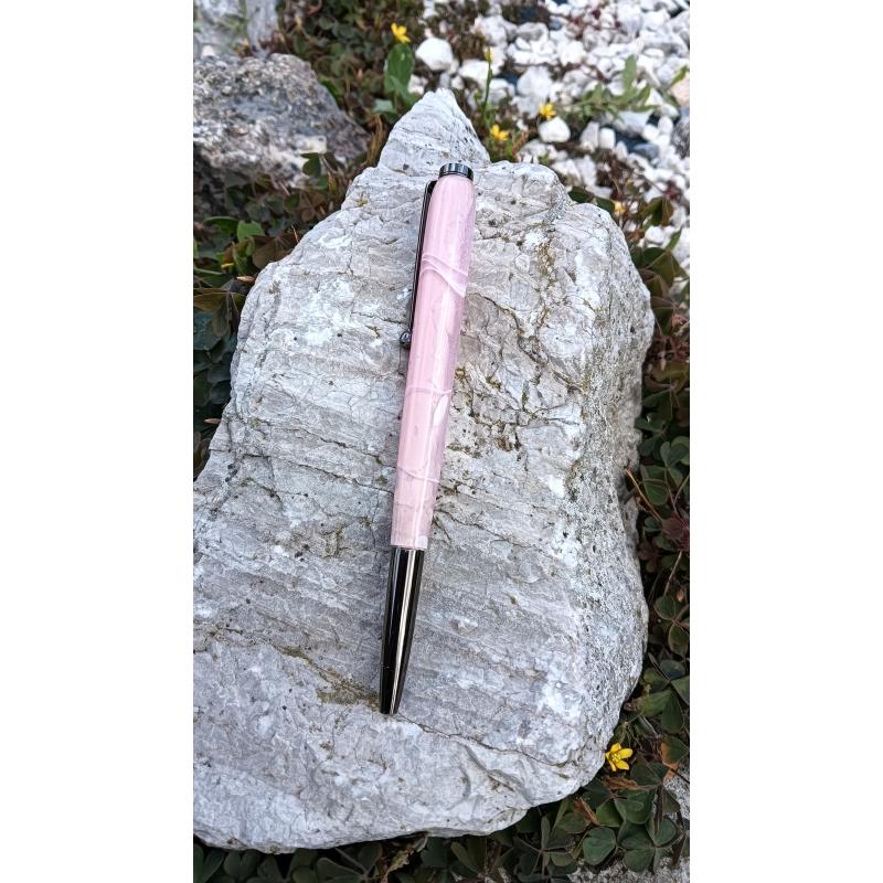 Stylo en résine rose, mécanisme quart-tournant, très fin et très léger !