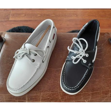 Coloris disponibles blanc, marine, brown en cuir lisse et marine, beige et brandy (oranger) en cuir retourné (nubuck)
